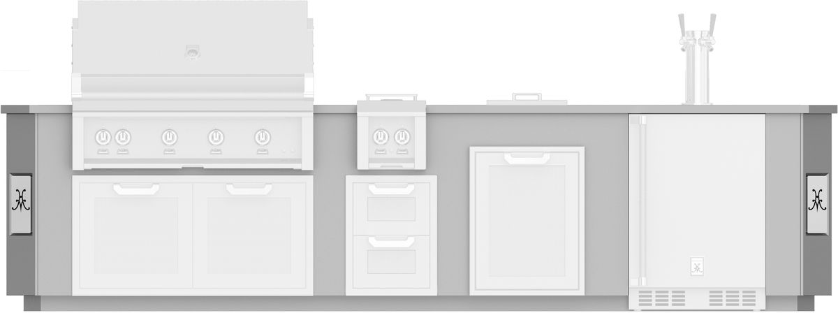 12-foot Outdoor Living Suite with Side Burners consists of multiple cutouts (appliances sold separately) in a suite to accommodate: 42" Hestan Built-in Grill, 42" Hestan Access Door or Drawer/Door Cabinet, 12" Hestan Double Side Burner, 16" Hestan Double Drawers, 20" Hestan Trash and Recycle Center Storage Drawer, Trash Chute, 24" Hestan Beer Dispenser.
