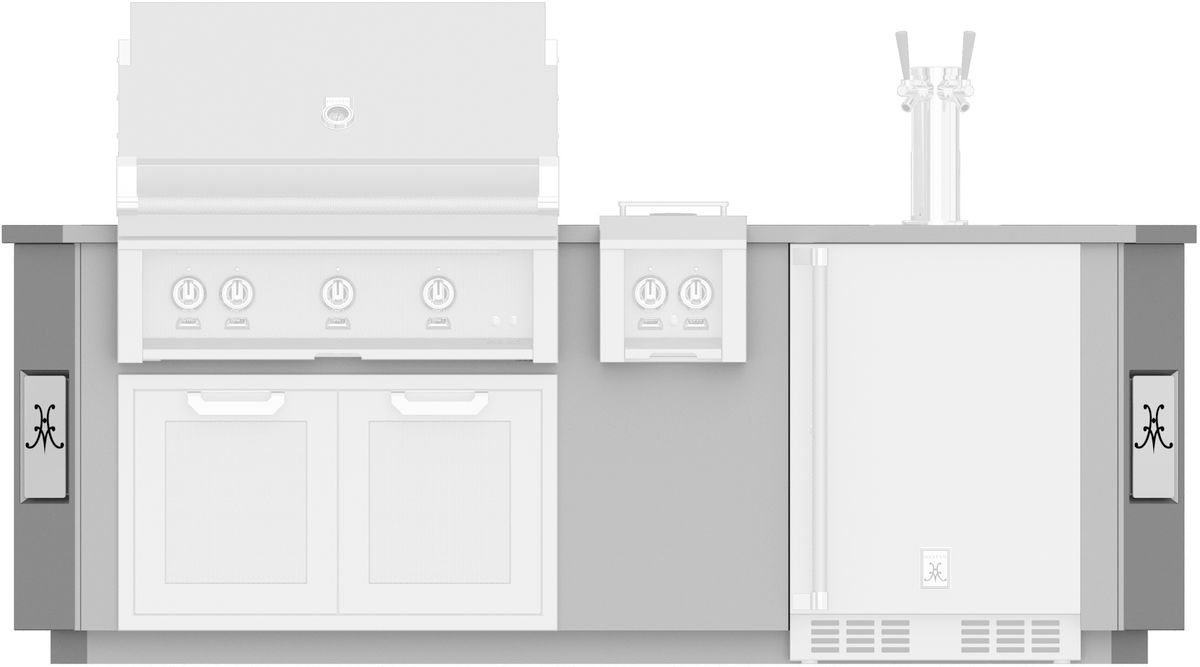 8-foot Outdoor Living Suite with Side Burners consists of multiple cutouts (appliances sold separately) in a suite to accommodate: 36" Hestan Built-in Grill, 36" Hestan Access Door, Drawer/Door Cabinet or Sealed Pantry, 12" Hestan Double Side Burner, 24" Hestan Beer Dispenser.