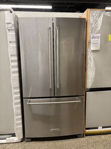 Enjoy freshness within reach. This KitchenAid® counter-depth French door refrigerator features an interior water dispenser to keep the outside looking sleek. Get customizable storage with an adjustable wood-look nesting shelf and convenient space for wide items.Read More