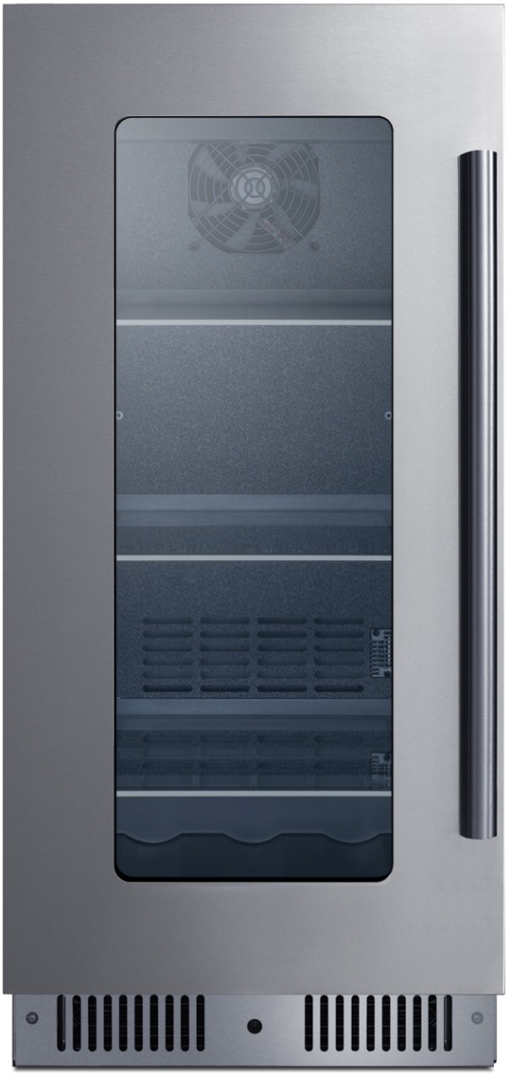 Summit's CL156BV1CSSLHD is a 15" wide beverage center designed for residential or commercial settings. The front-breathing system allows built-in installation, while the fully finished stainless steel wrapped cabinet allows freestanding use. A seamless 304 grade stainless steel trim blends smoothly into the gently tinted glass door for an elevated look, with a professional stainless steel handle included. This unit has a sealed rear and right-angle cord for an improved flush fit. The fully articulating European-style hinge design ensures a smoother opening. A lock is located in the kickplate for added convenience and security.Read More