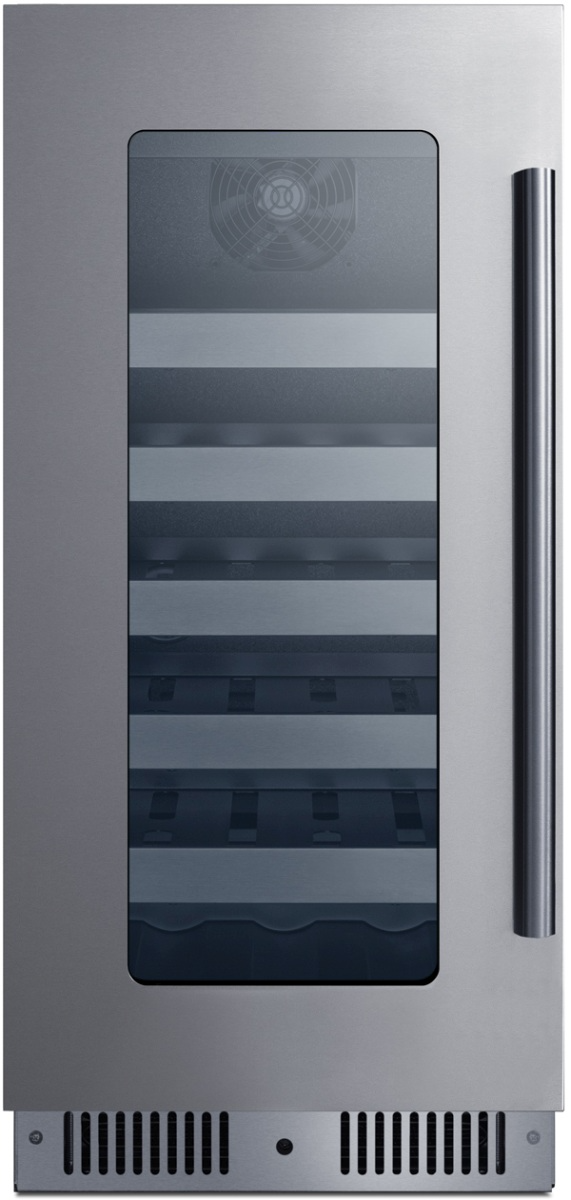Summit's CL155WC1CSSLHD is a 15" wide single-zone wine cellar designed for residential or commercial settings. The front-breathing system allows built-in installation, while the fully finished stainless steel wrapped cabinet also allows freestanding use. A seamless 304 grade stylish stainless steel trim blends smoothly into the gently tinted glass door for an elevated look, with a professional stainless steel handle included. This unit has a sealed rear and right-angle cord for a better fit. The fully articulating European style hinge design ensures smoother opening. A lock is located in the kickplate for added convenience and security.Read More