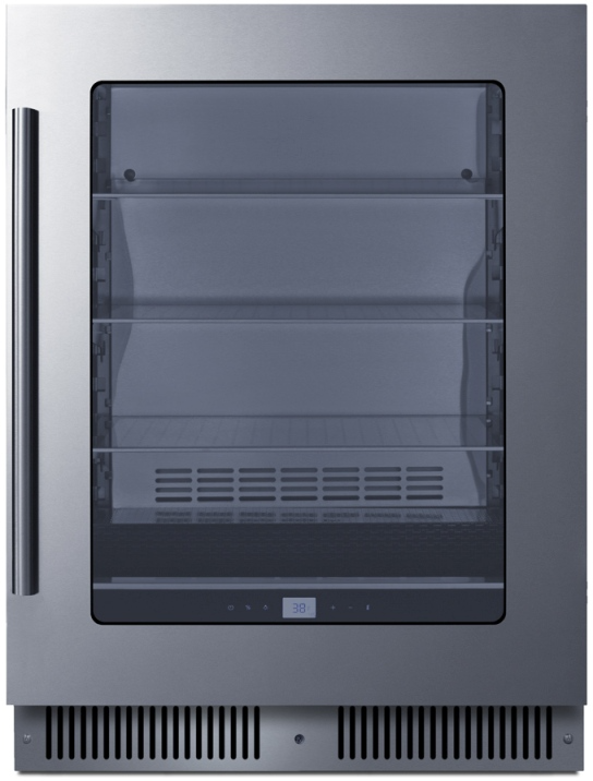 Summit's collection of premium built-in undercounter beverage centers brings full functionality, convenience, and elevated style to kitchens and home bars. Summit's CL24BV1 is a 24" wide beverage center designed for residential or commercial use with 4.73 cu. ft. of storage space. The front-breathing system allows built-in installation, while the fully finished black cabinet also allows freestanding use. Seamless, stylish stainless steel trim blends smoothly into the reversible double pane tempered glass door for an elevated look, with a professional stainless steel handle included. This unit has a sealed rear and right-angle cord for a better fit. The fully articulating European-style hinge design ensures a smoother opening.Read More