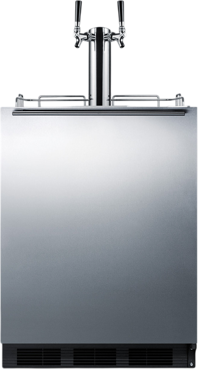 Sized at 32 inches high, the SBC58BLBIADATWINBW is designed to fit under lower ADA compliant counters. The front-breathing design allows built-in installation, while the fully finished black cabinet also enables freestanding use. This unit features a user-reversible 304 grade stainless steel wrapped door complete with a stainless steel handle mounted horizontally for a modern look. We include a guard rail (ships uninstalled) and removable two-piece stainless steel drip tray for cleaner service. The SBC58BLBIADA ships with a complete Sankey American dual tap kit complete with a draft tower, one 5 lb. nitrogen/CO2 tank and regulator for wine and one 5 lb. CO2 tank with regulator for beer, and all the equipment you need to serve wine and beer on tap.Read More
