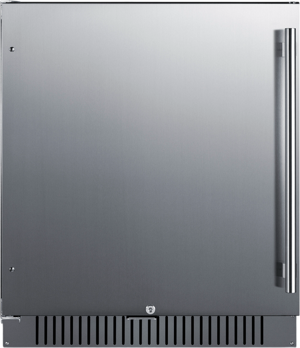 Model FF27BSSADALHD is an all-refrigerator sized just under 27" wide and under 24" deep for an easy fit under in any kitchen with limited depth. The 32" height makes this perfect for use under lower ADA compliant counters. The front-breathing design allows built-in installation, while the fully finished black cabinet also enables freestanding use. The door comes in a stainless steel finish with a vertical grain and a pro style handle. This unit has an integrated flat door hinge in stainless steel that does not add any additional height. The sealed back and right angle plug help to ensure an easy fit. We include a factory-installed lock on the door and two keys for optional security as needed.Read More